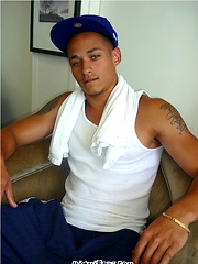 Sergio plays with his rock hard latin cock