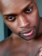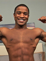 Ebony jock Landon shows his perfect abs and hard cock