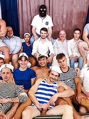 Horny captain and young sailors fucking each other in a wild gay orgy