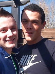 Twinks Greg Centuri & Theo Sartera engage in rough gay outdoor sex action