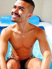 Pool boy Pablo Pen splashing about in my balcony pool